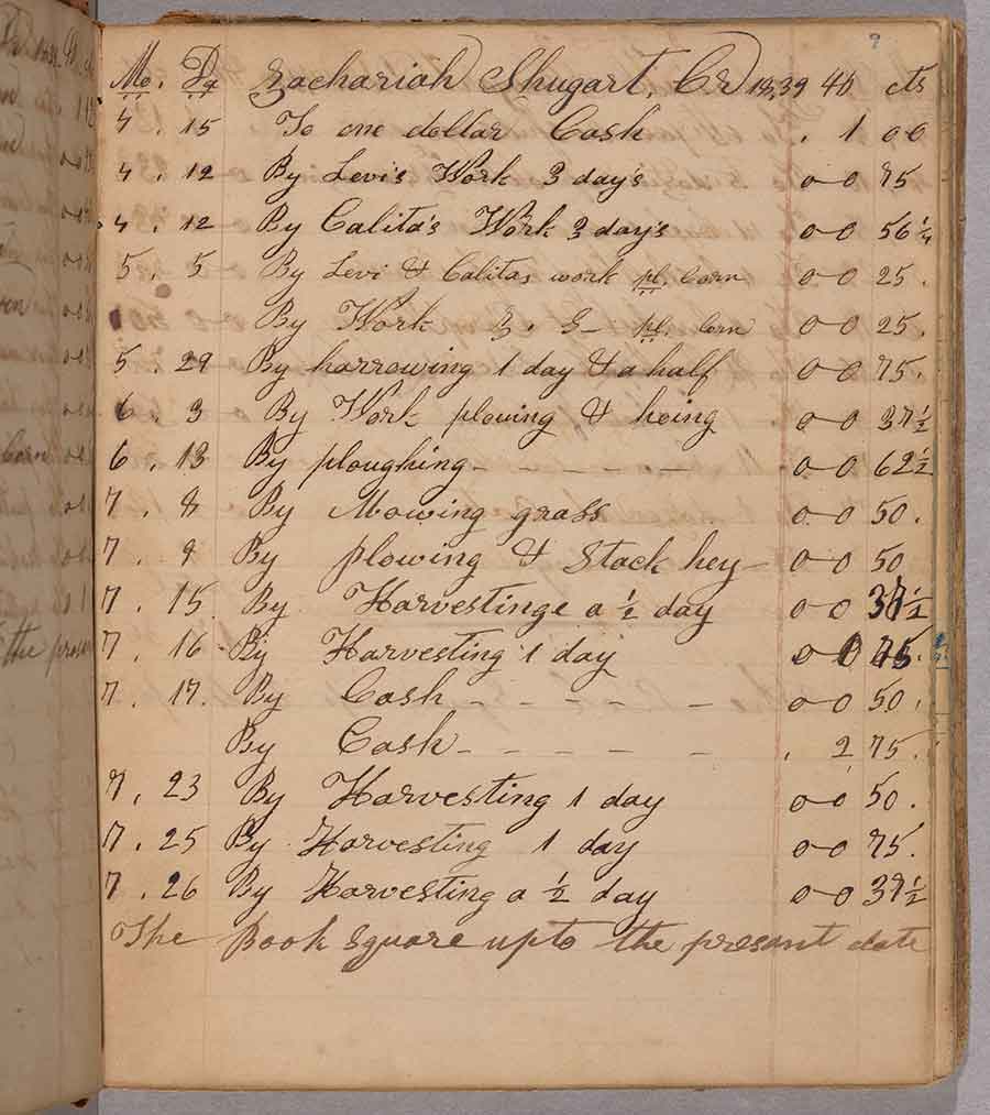 In the account book, we first meet young Zachariah Shugart in Indiana, where his family, along with other Quaker families, had moved from their native North Carolina in the late 1820s. They were looking expressly to settle in a place that did not condone slavery and found it farther north and west.