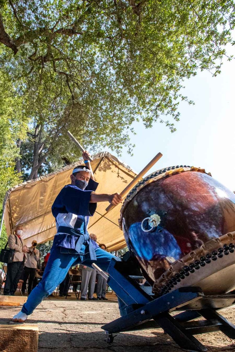 The strong, resonant tones of a taiko drum invoke the spirits and express thanks for their blessings. The Huntington Library, Art Museum, and Botanical Gardens. Photo by John Diefenbach.