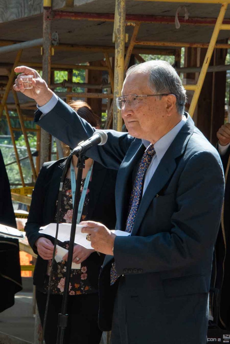 Towards the end of the jotoshiki event, small glasses of sake were passed to all those in attendance, and Yokoi offered a heartfelt toast. He also thanked key project leaders—in particular, Conlan, Hori, and Huntington board member Toshie Mosher—saying, “Without your extensive research, everlasting and enthusiastic interest, and considerate and helpful advice, this project would not have been possible.”