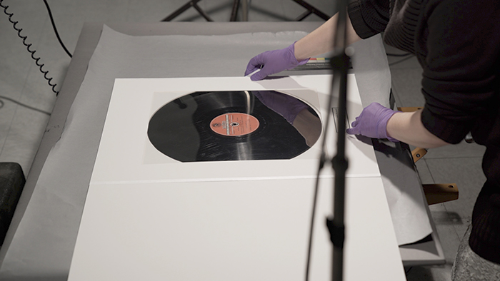 In Aric Allen’s video, the Hazelton recording is prepared for its close-up by Jessamy Gloor, a conservator at The Huntington.