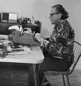 Charles Bukowski at his typewriter