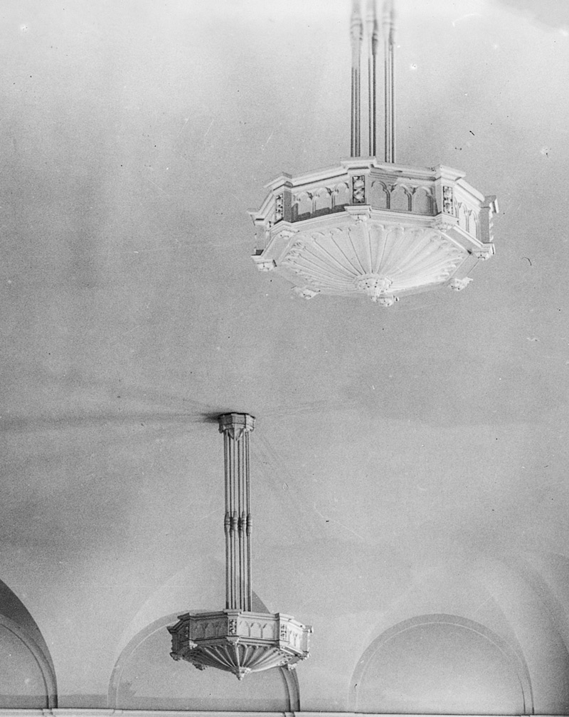 Historic photo of the original chandeliers.