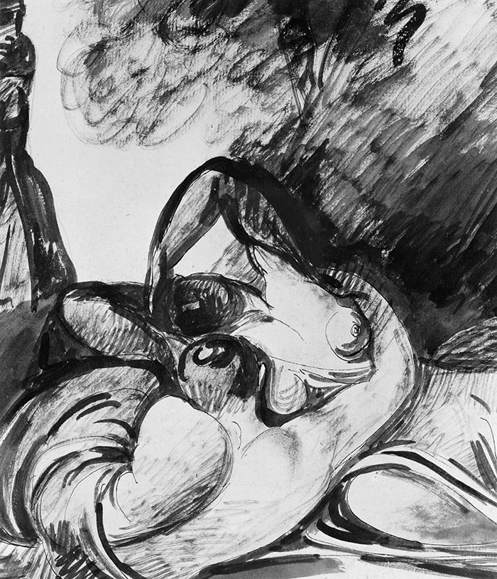 Like these individual drawings, Romney’s sketchbook of around 1796 is filled with expressive imagery. However, these are not pictures made to appeal to the readers of the latest Gothic novel. Many of the drawings in this book go beyond the psychological intensity of his literary subjects, like Cimon and Iphigenia and Circe, to reveal the private thoughts, fears, and desires of a mind in turmoil. Despite his popularity, Romney was by nature a shy and secretive person. By the mid-1790s, he increasingly suffered from bouts of depression and paranoia, while a series of small strokes made working difficult. Art historians have read this extraordinary sketchbook as evidence of the deteriorating physical and emotional state of the artist. In 1799, Romney left London for good and retired to the village of Kendal in Cumbria, England, bringing to an end one of the most brilliant careers in British art.