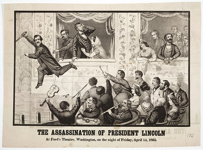 The Assassination of President Lincoln. At Ford’s Theatre, Washington, on the night of Friday, April 14, 1865, lithograph,1865. Unidentified artist. The Huntington Library, Art Collections, and Botanical Gardens.