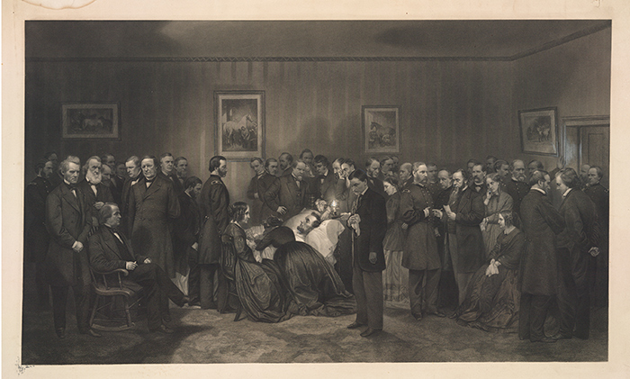The Last Hours of Abraham Lincoln, c. 1868, line and stipple engraving (artist’s proof), by John B. Bachelder (1825–1894), after a painting by Alonzo Chappel (1828–1887). The Huntington Library, Art Collections, and Botanical Gardens.