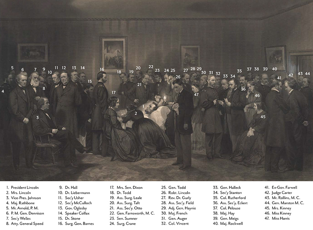 Key to The Last Hours of Lincoln. Based on a key published in 1908 by M. David. The Huntington Library, Art Collections, and Botanical Gardens.