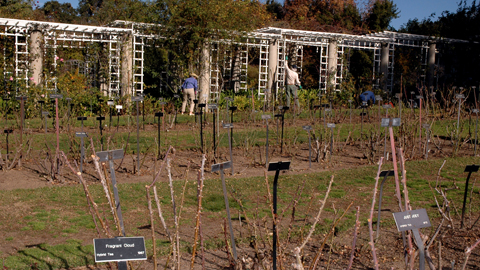 "Pruning this many roses is a team effort," says Martin, who has overseen this garden since 1983. "We couldn't manage to do it as efficiently without our dedicated volunteers."