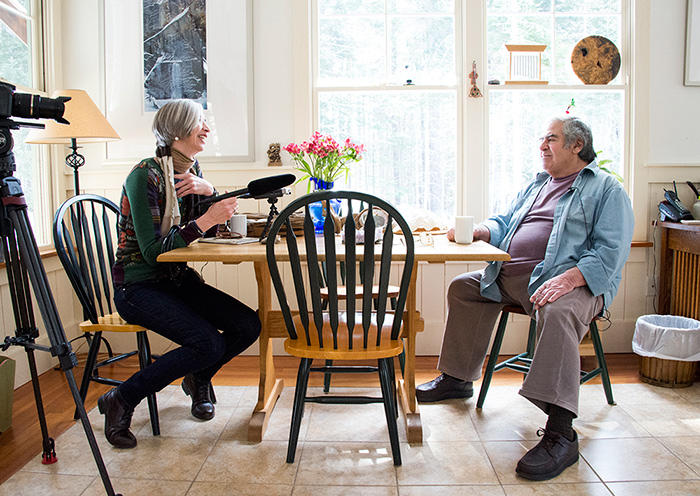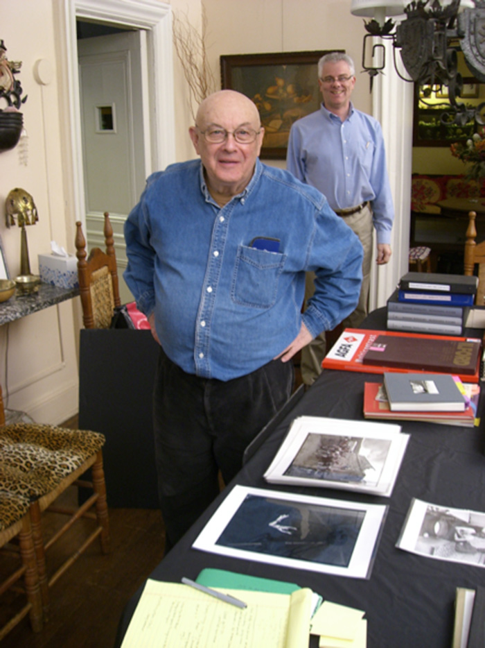 Yale curator Scott Wilcox (background) with Bruce Davidson at Davidson's home in New York City, 2010.